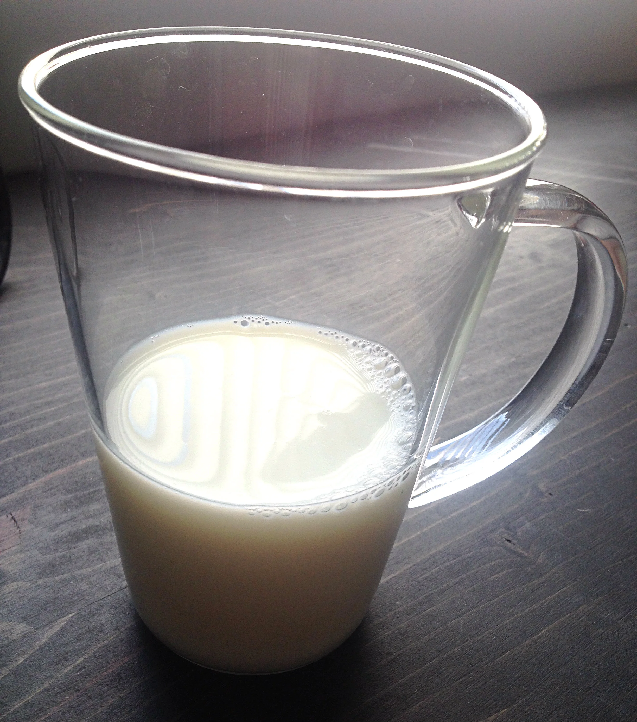 Once you've got your milk measured, heat it up. You can do this by putting it over medium-high heat on the stove for a couple minutes, or you can pop it in the microwave for a minute and a half, which is what I normally do to speed the process up.